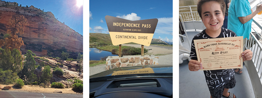 We first visited Zion National Park in Utah, and then the Continental Divide at 12,000+ feet in the Rocky Mountains of Colorado, and traveled through the plains and buffalo grass of Kansas. At our stopover in Hannibal, Missouri, Raul commandeered the Mark Twain Riverboat on a dinner cruise on the muddy Mississippi (earning him an honorary River Pilot license).