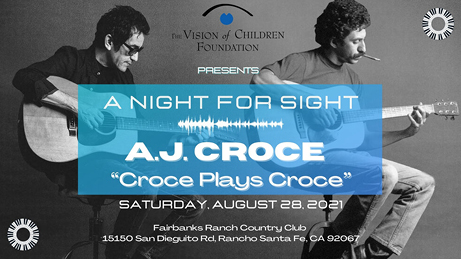 Swenson Advisors and the Swenson Children’s Foundation are pleased to be sponsors of The Vision of Children Foundation’s A Night for Sight and to be supporters of its vital research into curing hereditary childhood blindness and related vision disorders. The event is scheduled for Saturday, August 28, 2021 at Fairbanks Ranch Country Club in Rancho Santa Fe and will include a Reception with Silent Auction, Dinner, Live Auction, and Opportunity Drawing. It will feature a special concert by A.J. Croce, who has been visually impaired since childhood. “Croce Plays Croce” will pay homage to the legacy of A.J.’s father, the legendary Jim Croce.